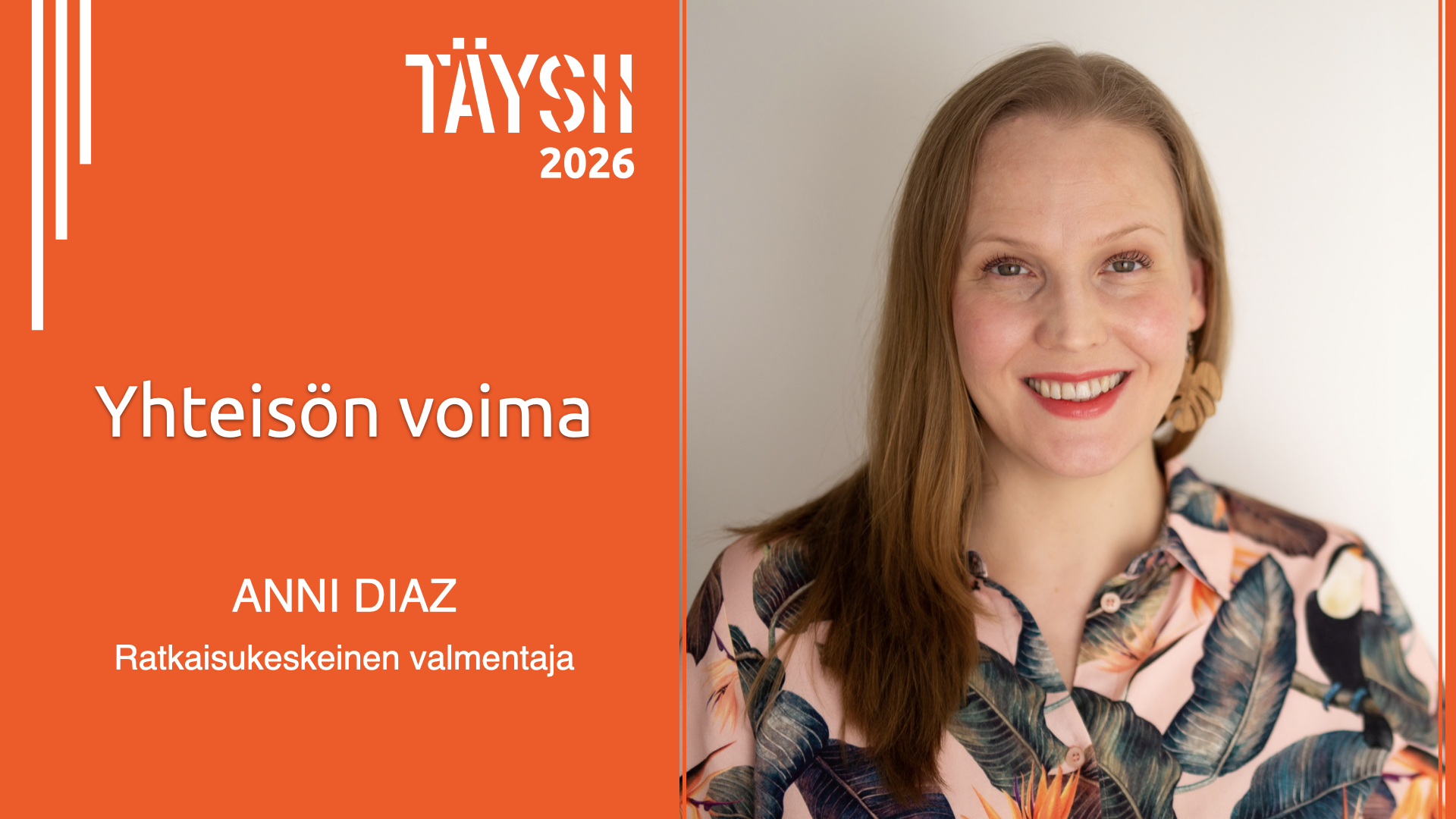 TÄYSII 2026 -seminaarin puheessaan Jaana kertoo, miten löydät lisää rohkeutta tehdä vaikeita valintoja, elää omannäköistä elämää ja kohdata maailman haasteet rakentavalla tavalla. Saat inspiraatiota ja rohkaisua ottaaksesi ensimmäisen askeleen kohti tärkeää päätöstä tai unelmaasi.